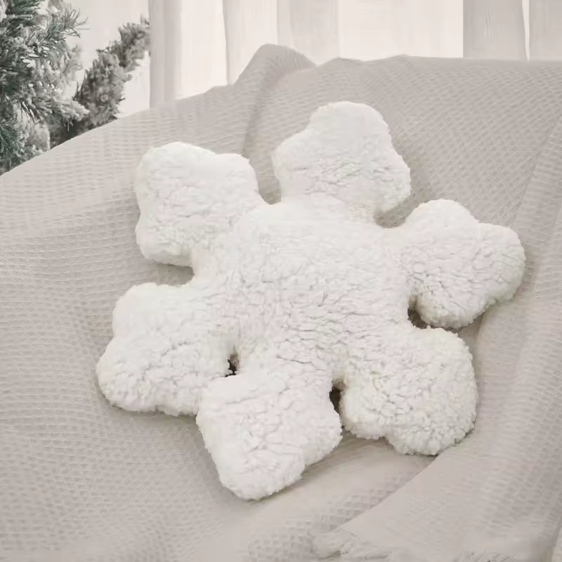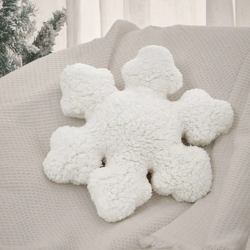 3D Snowflake Decorative Cushion Winter White Snowflake Shape Pillow Christmas Home Holiday Decoration Sofa Cojines for Bedroom